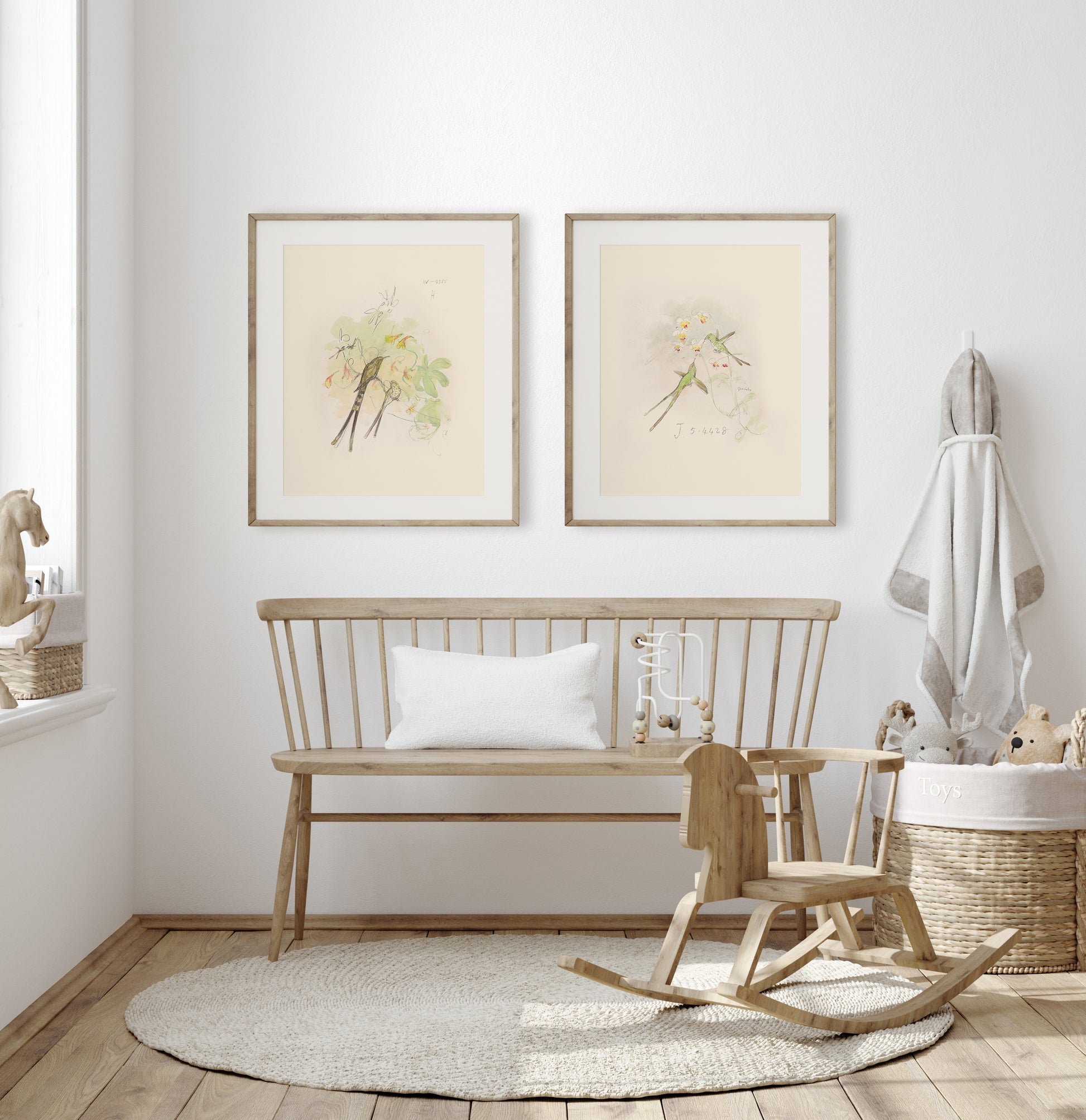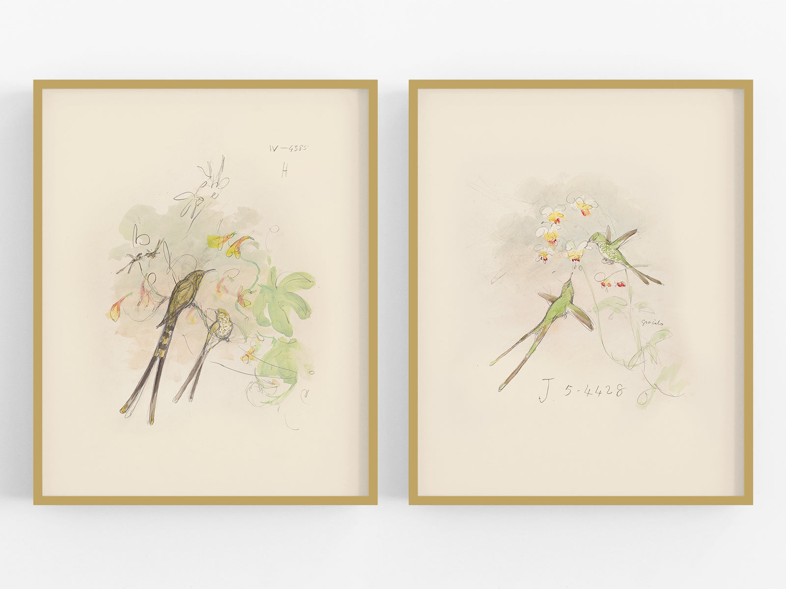Hummingbird Watercolor Sketch Art Prints, #1 & #2 - Set of Two