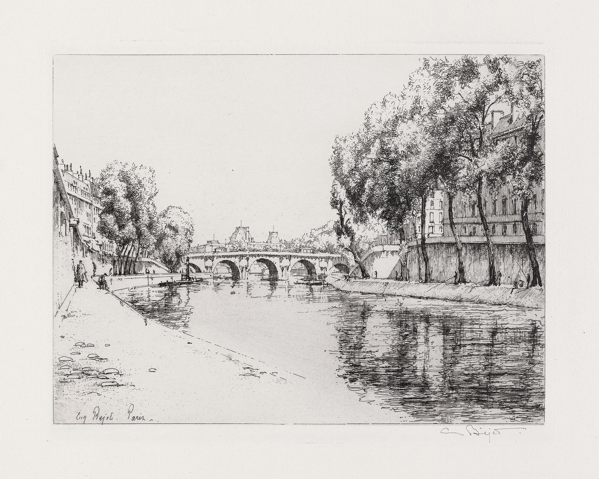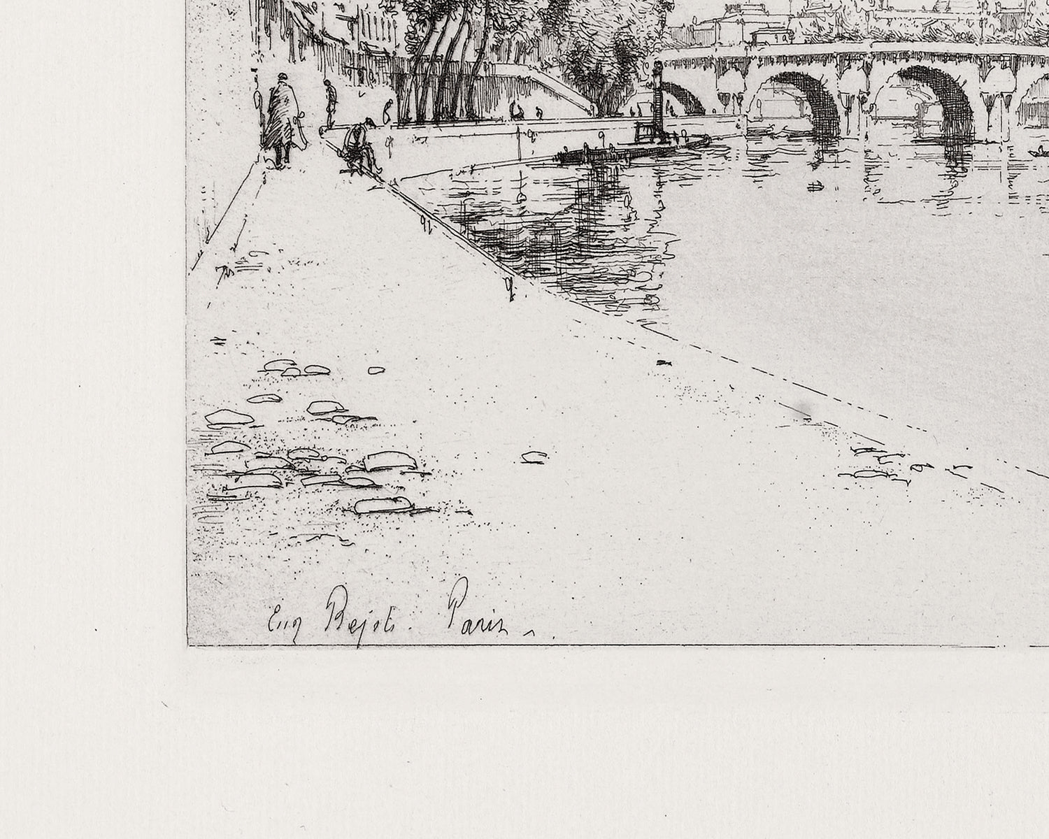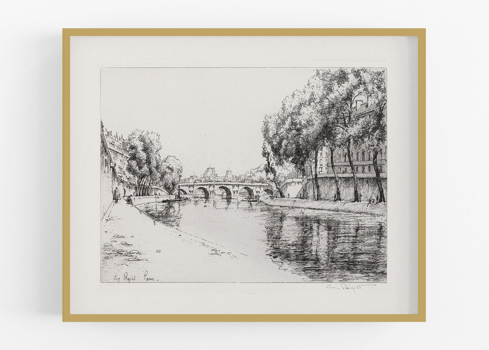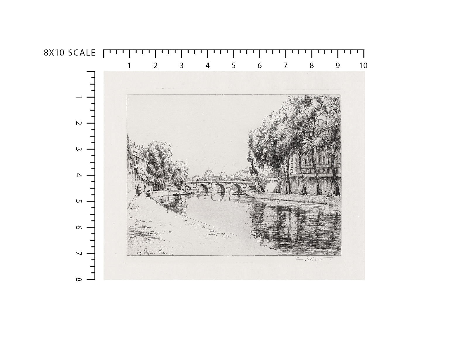 The Seine River Paris, etching reproduction art print, c. 1920.