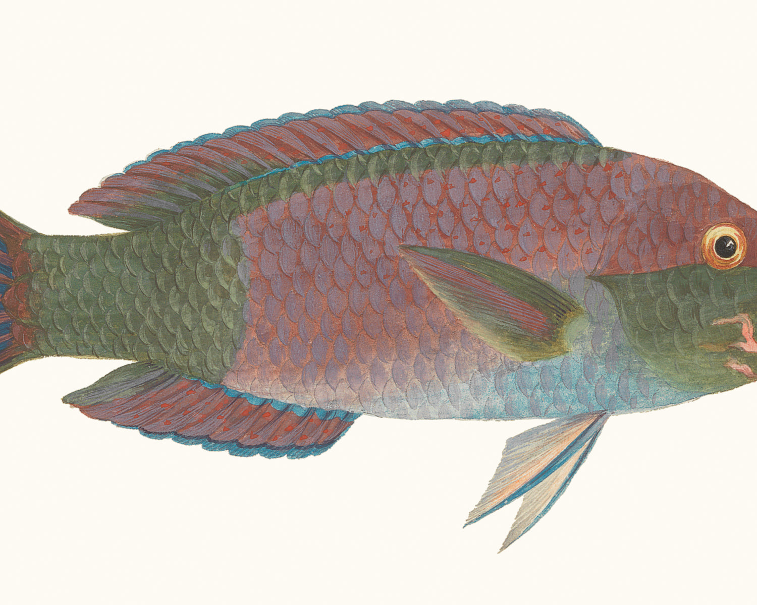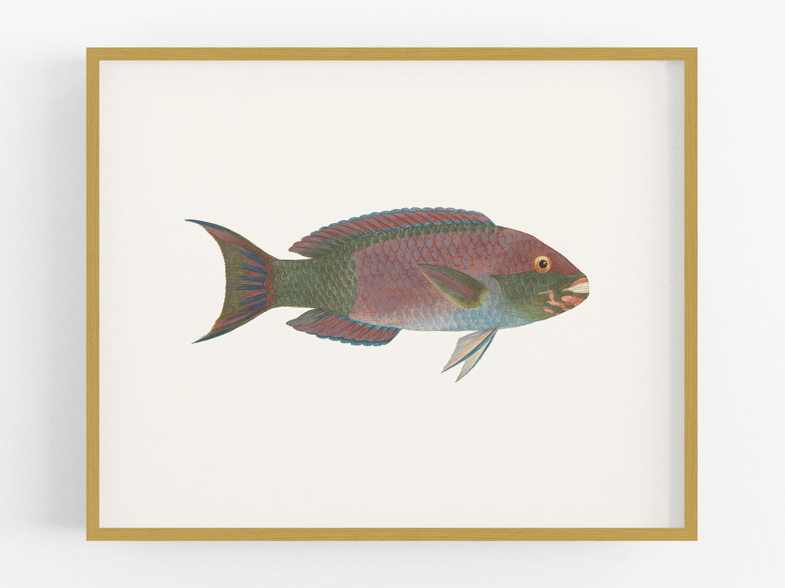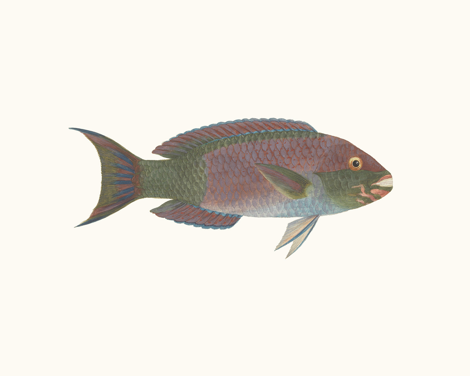 Parrotfish watercolor vintage reproduction art print, c. 1737-1770.