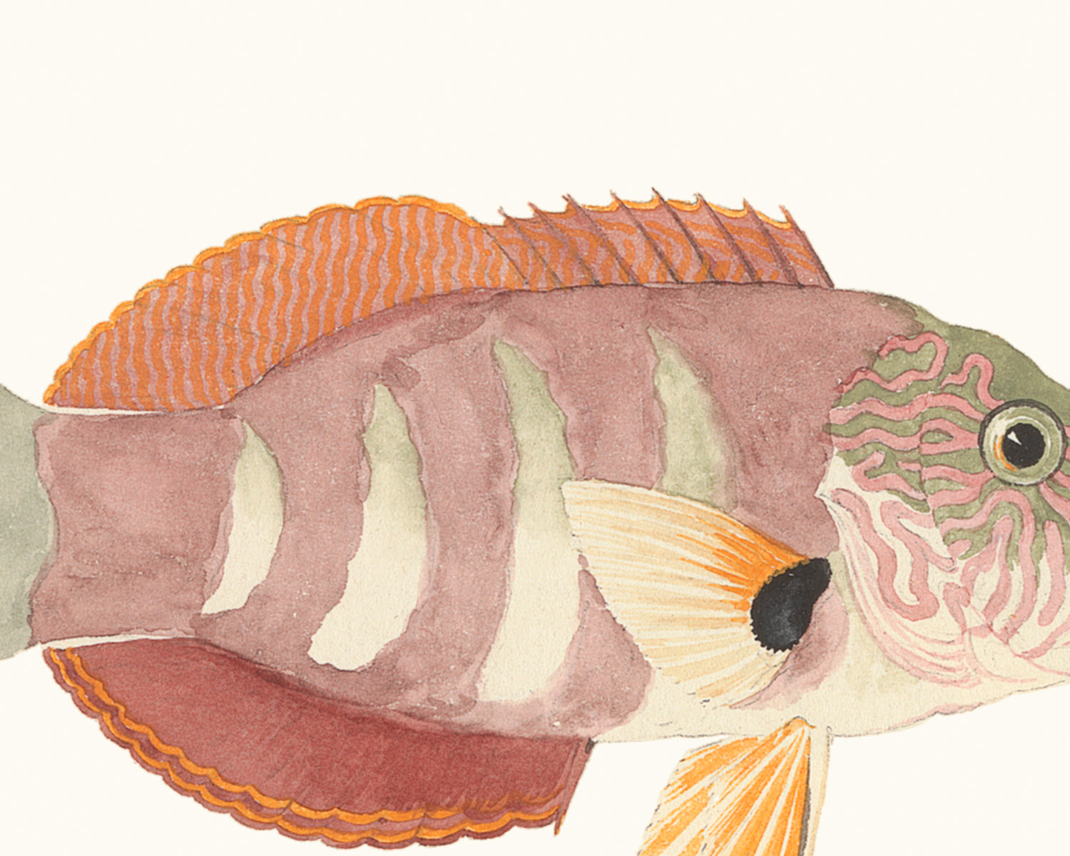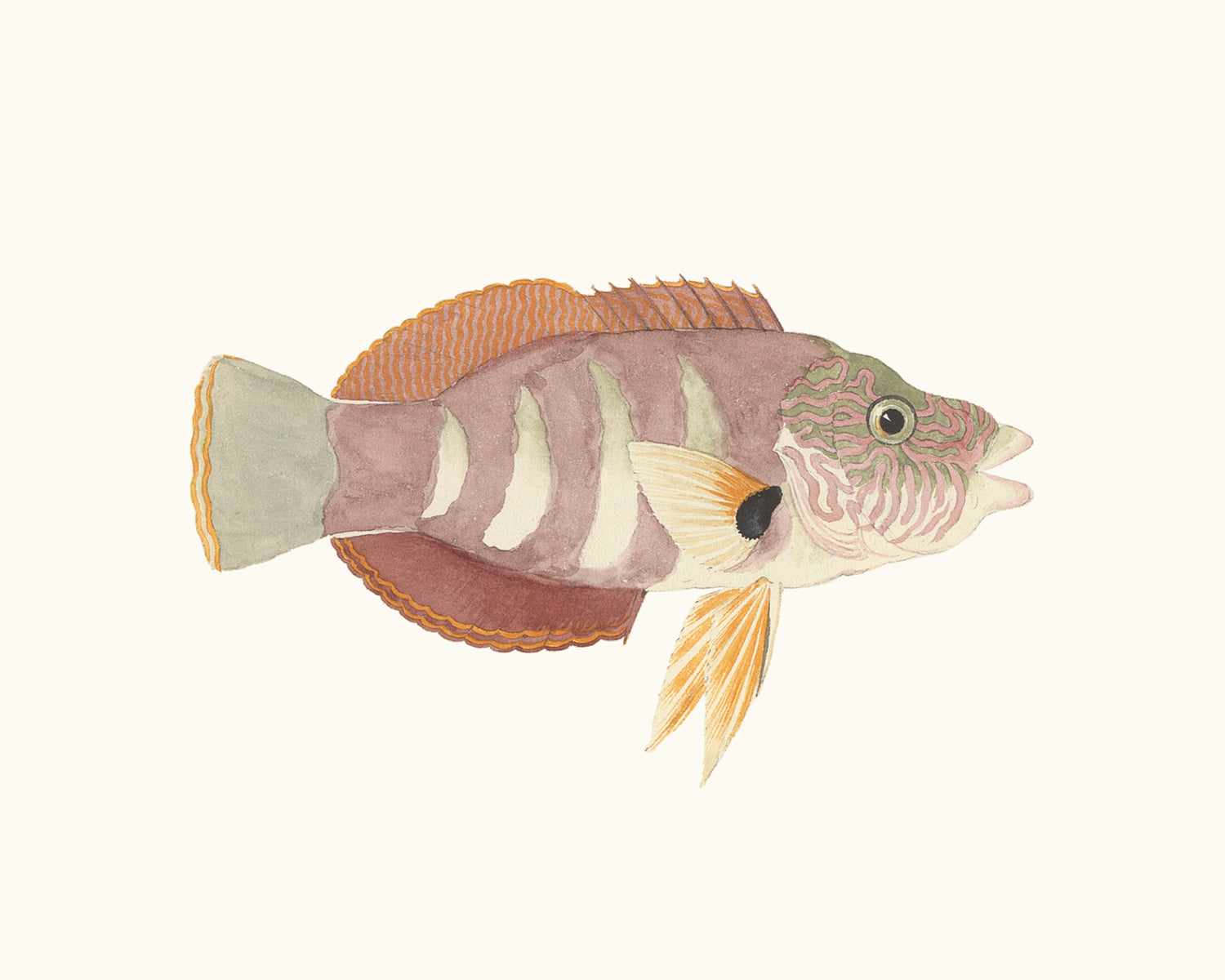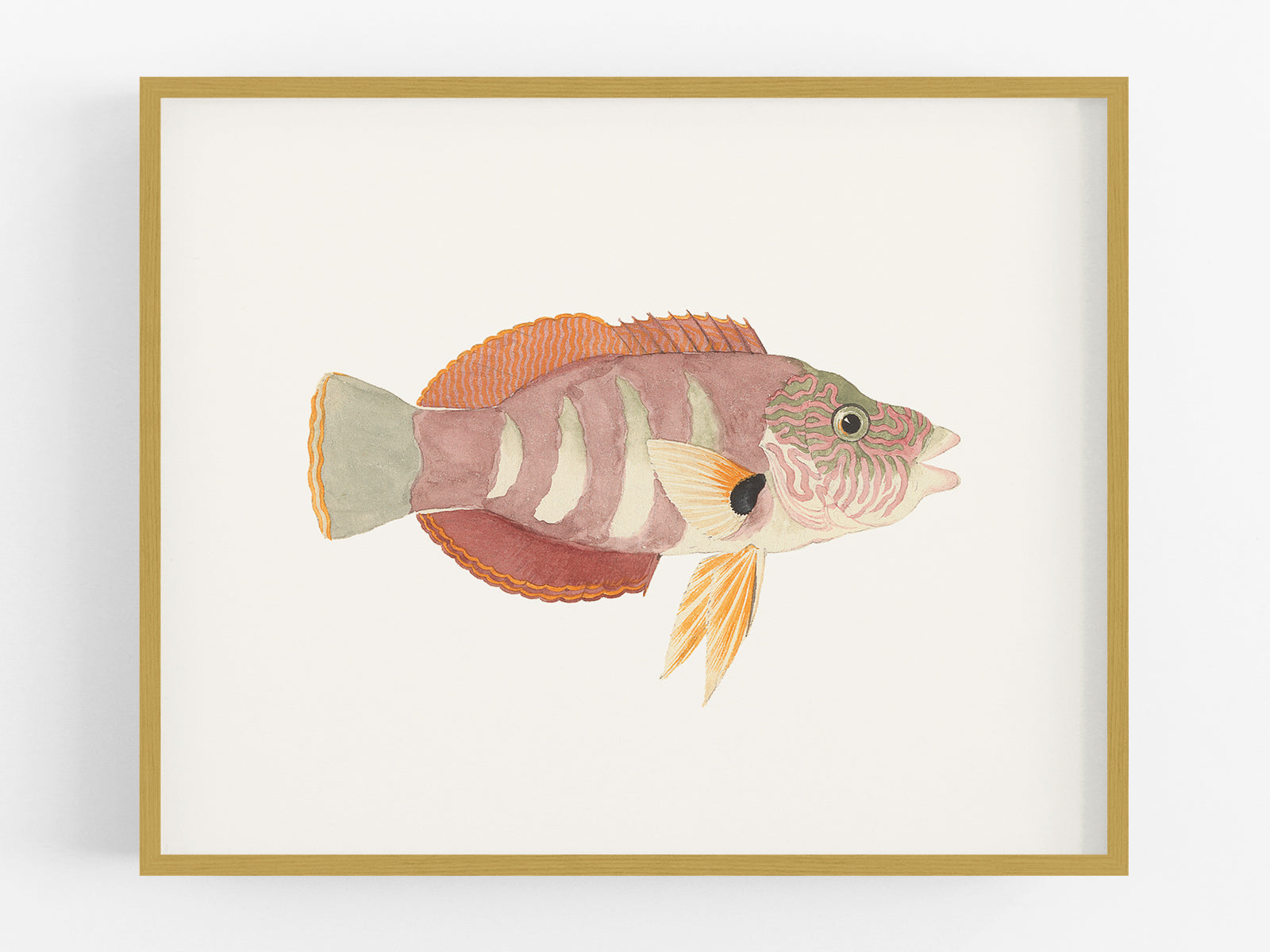 Tropical fish #4 watercolor vintage reproduction art print, c. 1737-1770.