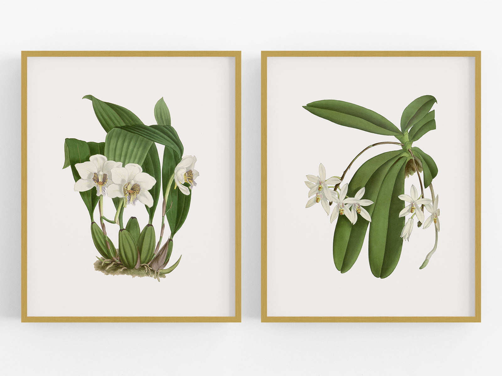 White orchid botanical vintage reproduction art prints, c. 1897.